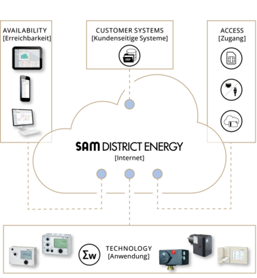 SAM DISTRICT ENERGY is a web-based solution for managing, operating and optimizing your heating systems. All key data on connected controllers, utility meters and electric actuators are saved at one central location. Any smart mobile device can be used to access SAM DISTRICT ENERGY.